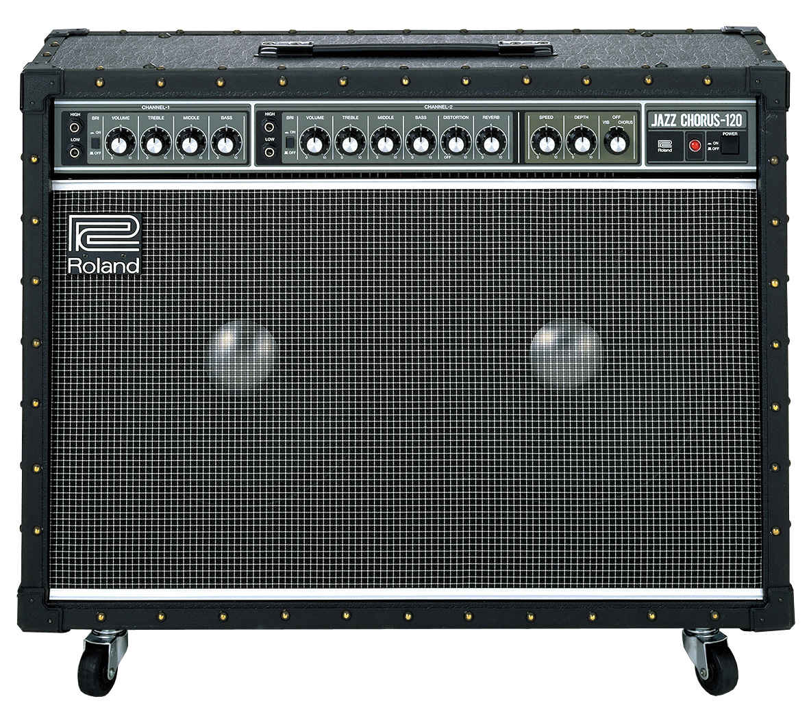 Roland JC-120B - В 1975 году Roland выпускает первый усилитель модели JC-120. Он стал своеобразной революцией в сфере гитарного усиления, поскольку JC-120 Jazz Chorus ™ выглядел и звучал как ни один из производившихся на тот момент усилителей. И по прошествии 30 лет остается очень востребованным гитаристами по всему миру. Его конструкция и элементная база не изменялась с самого начала и по сей день, и благодаря своему уникальному звучанию он завоевал статус легенды в среде знатоков гитарных усилителей. Теперь эмуляция его звучания есть практически во всех усилителях начиная с семейства CUBE и заканчивая сериями AC- и D-Bass.