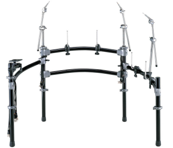 Новый стенд для барабанов MDS-20BK имеет современный «обтекаемый» дизайн; конструкция обеспечивает легкий доступ к любым узлам. Черный цвет соответствует новым пэдам (электронным барабанам) PD-125BK/105BK и тарелкам; соединительные шнуры спрятаны внутри труб. Конструкция чрезвычайно надежна и удароустойчива благодаря новым Т-образным креплениям (см. рис.). Форма стенда может быть гибко изменена для удобства размещения дополнительных стоек, например, стойки для виртуального хай-хэта VH-12 или для барабанных пэдов SPD-S. Специальные зажимы рычажковой конструкции (см. рис.) позволяют легко изменять высоту каждой из ножек или стоек для тарелок.
