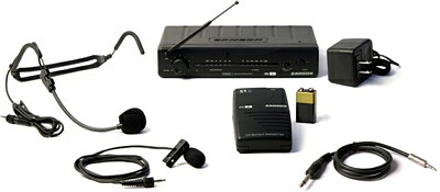 В комплекте : поясной трансмиттер, головной микрофон, нагрудный микрофон и инструментальный кабель