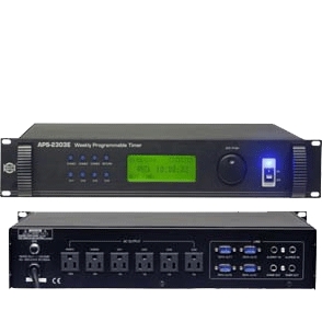 SHOW APS2303E - Блок недельно программируемого таймера для трансляционного оборудования. Создание, копирование и редактирование недельных расписаний включения и выключения приборов. А также включение по расписанию через интерфейс заданных треков CD, заданных станций тюнера, кассетного плеера, устройства аудио цифровой записи.
