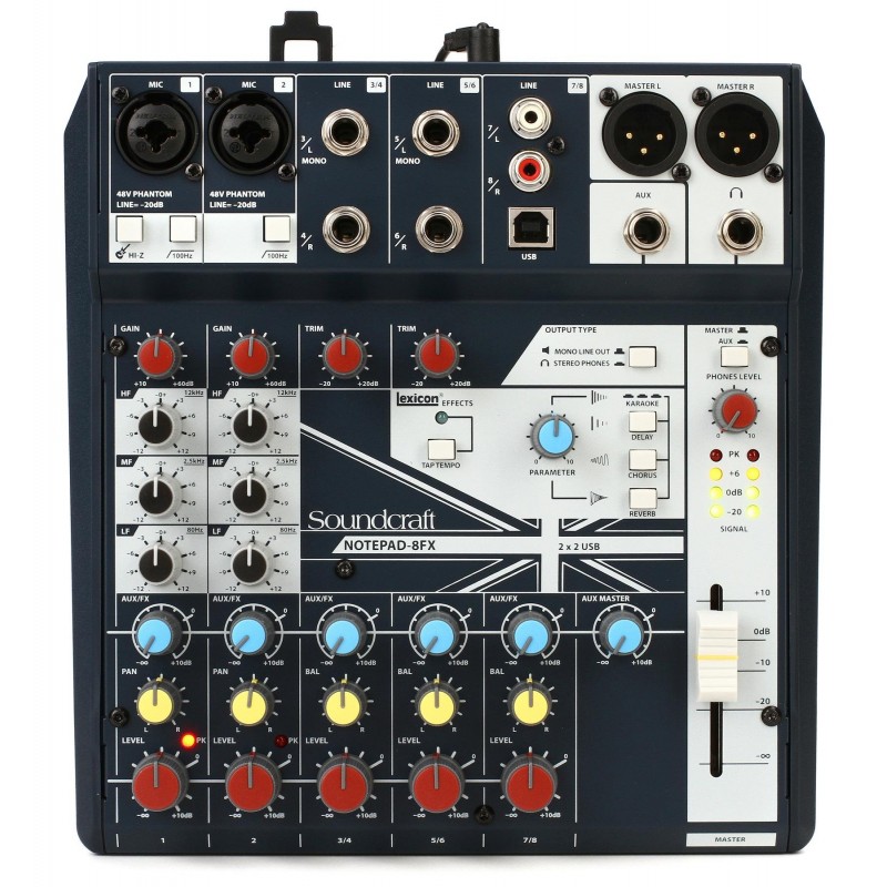 В отличие от младшей и более простой модели, Notepad-8FX оснащён набором эффектов Lexicon. Любой пользователь сможет запросто совершенствовать звучание с помощью задержки, реверба и хоруса. Каждый эффект по-своему регулируется поворотом кноба, а функция tap tempo обеспечит фиксацию эффекта для конкретного ритма музыки.