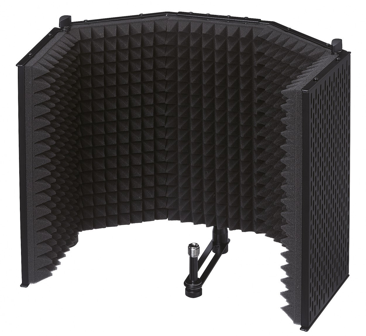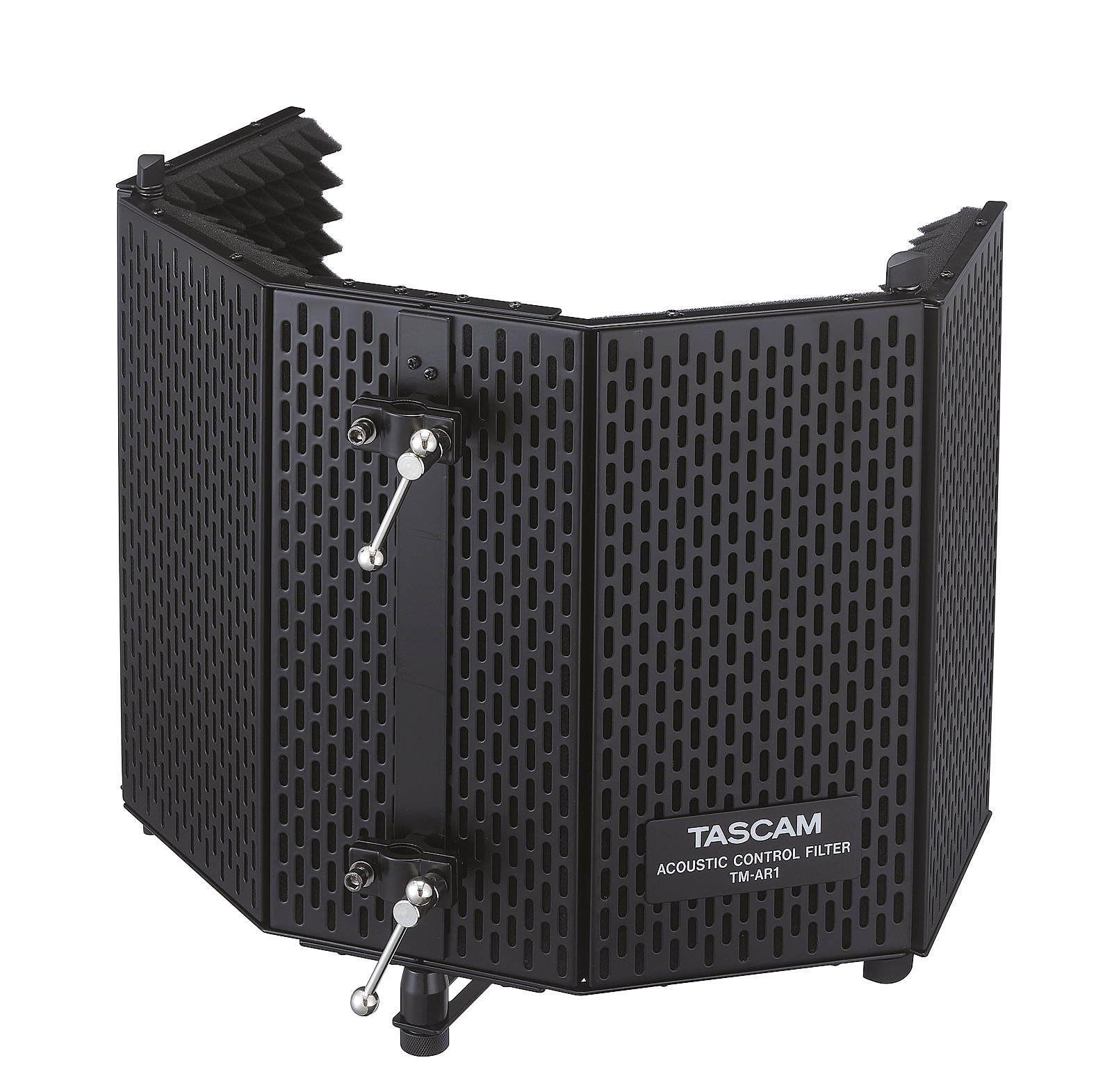 Tascam TM-AM1 имеет два зажима для установки на разной высоте. Оборудован собственным креплением для микрофона с регулируемым положением на резьбе 5/8'', в комплекте поставляется переходник с резьбы 3/8'' на 5/8'', что позволяет монтировать к экрану практически любой микрофон. Удобство транспортировки устройства обеспечивают его небольшой вес (3 кг) и складная конструкция. Благодаря звукопоглощающему материалу Tascam TM-AM1 поможет сделать чистую и «сухую» запись в акустически неподготовленной студии или обычной жилой комнате.Особенности панели для акустической обработки TASCAM TM-AR1