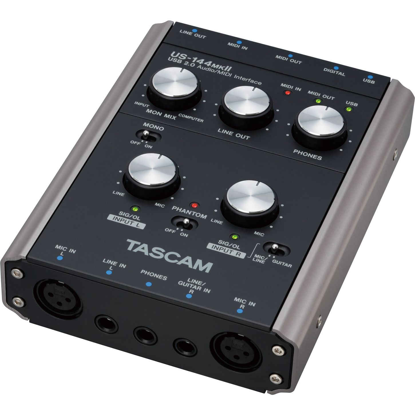 US-144MKII поддерживает частоты дискретизации до 96 кГц при разрешении 24 бита. Фактически, это удвоение характеристик обычного аудио CD – 44,1 кГц и 16 бит. (В случае если Вам необходим двуканальный рекордер и не нужен цифровой вход и выход, обратите внимание на модель Tascam US-122MKII.).