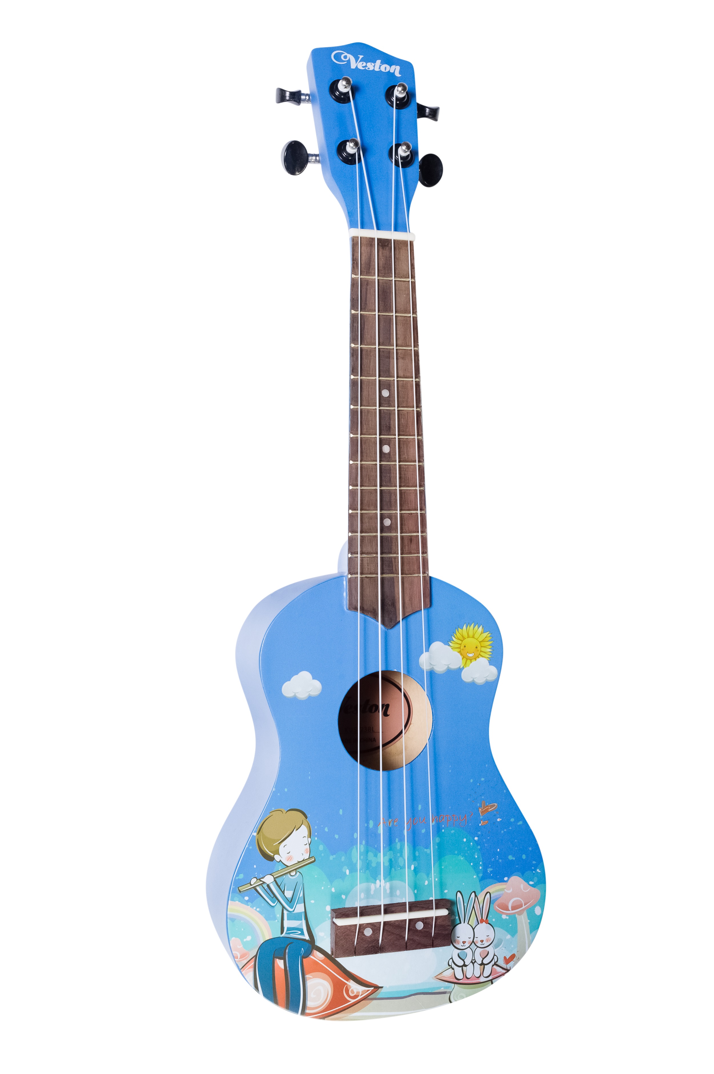 Укулеле VESTON KUS 23BL - отличный выбор, если нужен подарок для детей или для любимой девушки. Стильный и красочный дизайн, мягкое звучание маленькой гавайской гитары не оставят равнодушными никого.