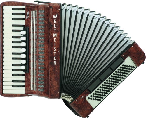 Weltmeister Opal 37/96/III/7/3 - Аккордеон. Клавиатура мелодии выполнена с уменьшенной мензурой. За счёт уменьшенных клавиш нижний диапазон Weltmeister Opal расширился до «Фа» большой октавы, как на полноразмерном инструменте, а верхняя граница диапазона лишь на терцию не дотягивает до «Ля» четвертой октавы. Аккордеон Weltmeister Opal идеально подойдет ученикам музыкальных школ для серьёзных занятий. Кроме того, это прекрасный инструмент для концертной работы благодаря небольшому размеру.