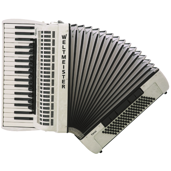 Weltmeister Topas 37/96/IV/11/5 - четырехголосный аккордеон с готовым аккомпанементом. В правой клавиатуре 37 клавиш, 11 регистров, диапазон-фа малой октавы-фа третьей октавы. В левой клавиатуре 96 кнопок, 5 регистров, бас четырёхголосный. Ремни и футляр в комплекте. Ремни и футляр в комплекте.
