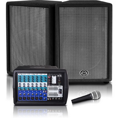 Система Wharfedale Pro PMX 700 SYSTEM включает в себя микшер-усилитель PMX-700 со встроенным ревербератором, два двухполосных 12-дюймовых громкоговорителя PTX8, мощностью по 150 Вт каждый, и один динамический микрофон DM1.0 (плюс микрофонный кабель и два кабеля громкоговорителей).