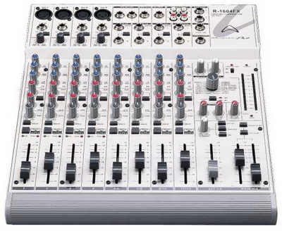 Каждый входной канал 16-канального микшера Wharfedale Pro R-1604 имеет 3-полосный эквалайзер, 60-милиметровые фейдеры, режимы PFL, Solo, Mute/ALT и светодиодный индикатор «пик/сигнал». Микшер оснащен раздельными выходами для мониторинга (room/headphone), имеют два AUX-посыла до и после фейдера и комплект креплений для установки в 19-дюймовый рэк.