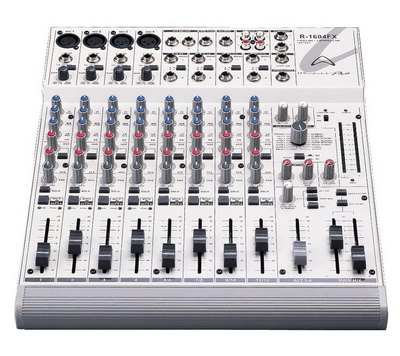 Пульт R-1604FX оснащён четырьмя микрофонными и четырьмя стереофоническими линейными входами и имеет трёхполосный эквалайзер на каждом канале.