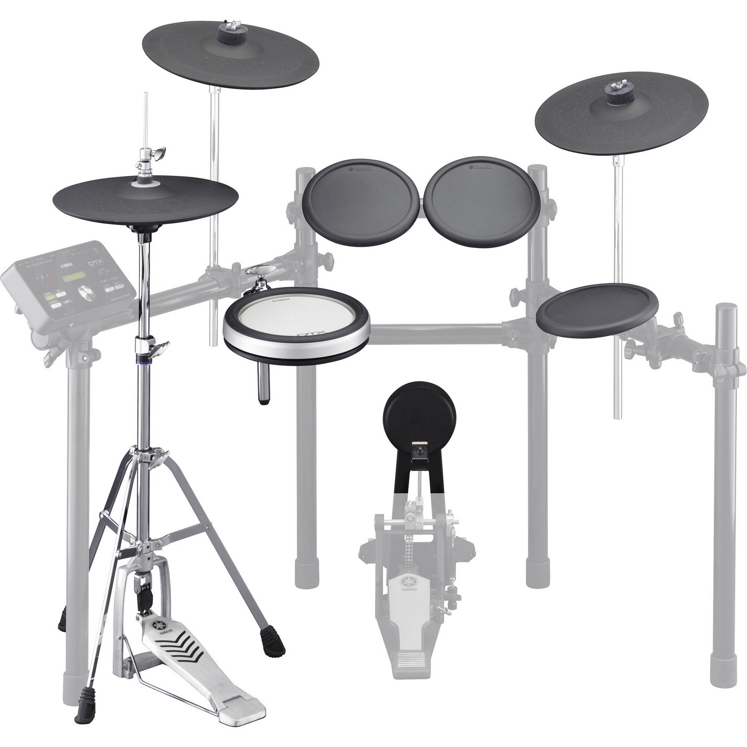 (Малый барабан: XP80 (8`` DTX-пэд с поддержкой открытых и закрытых римшотов) два альт-тома и напольный том: 3 x TP70 (7,5`` каучуковый пэд) бас-барабан: пэд KP65 хай-хэт: PCY100 (3-х зонный 10`` пэд) + RHH135 (13` пед хайхета с активными зонами края и ската) со стойкой HS650A + крэш: PCY135 (3-х зонный 13`` пэд c активными зонами края ската и купола) + райд: PCY135