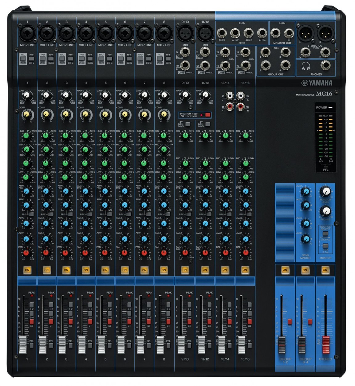 Yamaha MG16 - микшерный пульт, 10 микр./16 лин. вх.(8 моно+4 ст.), 4 груп.шины+1 ст.шина, 4 AUX.