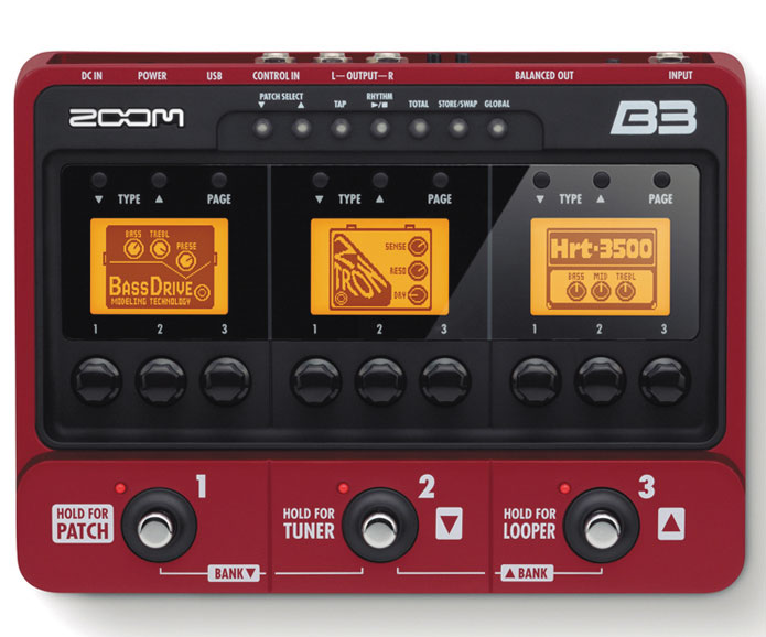 ZOOM B3 содержит 99 типов настроек разнообразных педалей из числа самых популярных гитарных примочек. Возможно использование до трех эффектов в любой комбинации, включая высококачественные стерео-кабинеты и басовые синтезаторы. B3 также содержит патчи, разработанные 4мя всемирно известными басистами: Виктором Вутеном (Victor Wooten (Béla Fleck & the Flecktones)), Дэвидом Эллефсоном (David Ellefson (Megadeth)), Франком Белло (Frank Bello (Anthrax)) и Дагом Вимбишом (Doug Wimbish (Living Colour)). Кроме того, B3 может хранить до 100 Ваших оригинальных творений.