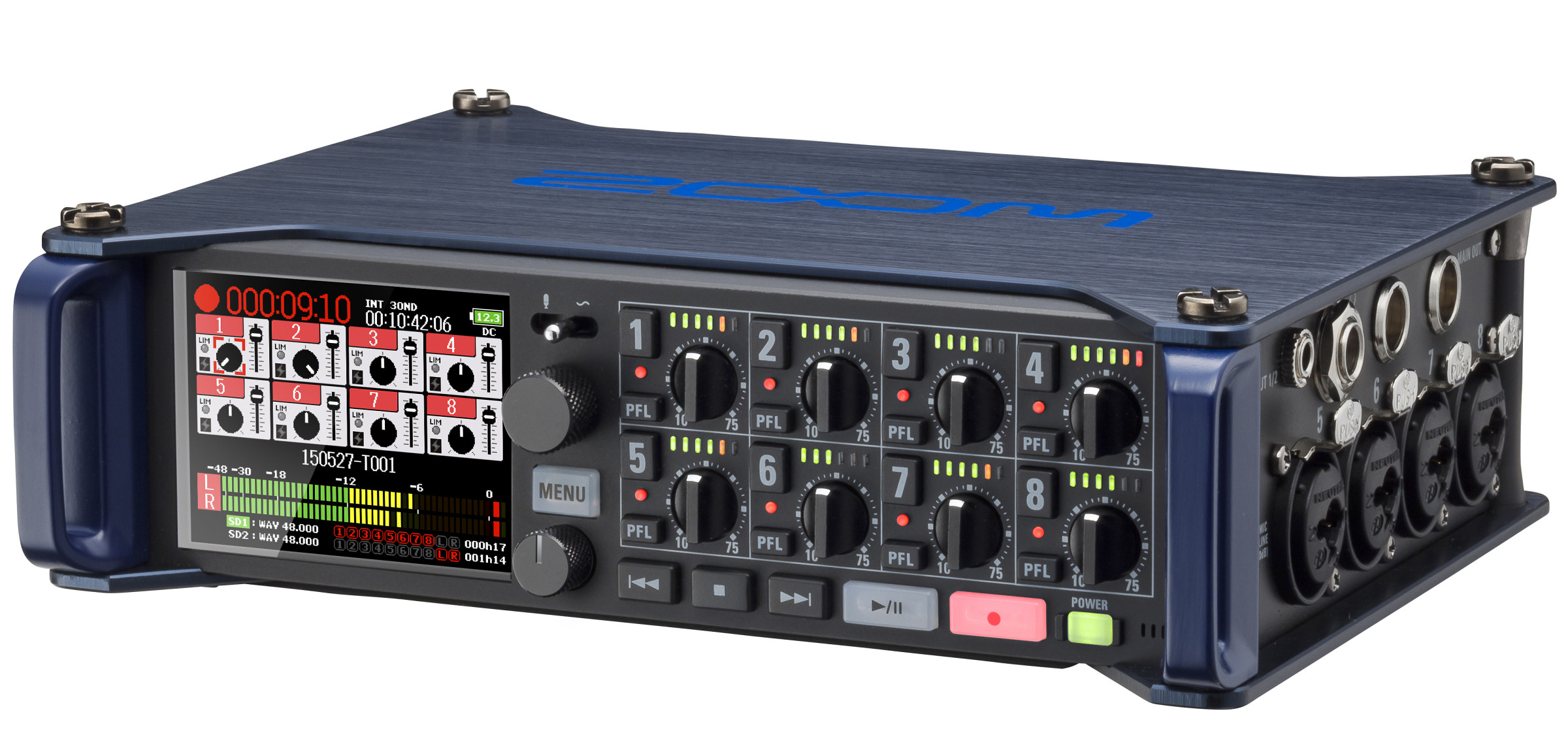 Рекордер Zoom F8 не только богат функциями и гибкими настройками, но еще и невероятно компактен. Нигде больше вы не найдете столь небольшой портативный рекордер с восемью совмещенными разъемами XLR. Сам рекордер весит чуть меньше килограмма (без батареек), а его алюминиевый корпус обеспечивает ему прочность и долгий срок службы.