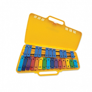 Глокеншпиль оснащен уникальной системой крепления брусков, которая обеспечивает ему особо чистое и точное звучание каждой ноты. Специальное покрытие защищает бруски от обесцвечивания и появления ржавчины, значительно продлевая срок службы инструмента.Количество брусков: 25, сталь.