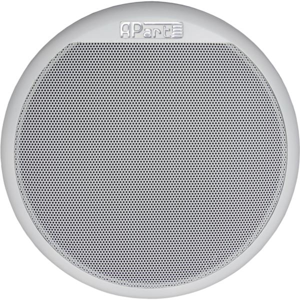 APart CMAR8-W - потолочный двухполосный громкоговоритель 20 - 10 - 5 - 2.5 Вт (100 В), 100 Вт (8 Ом) с НЧ динамиком 8" и ВЧ динамиком 1". Особенностью данного громкоговорителя является возможность установки во влажных помещениях и стойкость к высоким температурам. Класс защиты акустической системы IP65, громкоговоритель может спокойно работать при температурах до 95*С. При этом, громкоговоритель имеет отличные акустические характеристики и передает речевые и музыкальные программы с высоким качеством. Решетка громкоговорителя изготовлена из стали, стойкой к коррозии. Корзина и диффузор акустической системы изготовлены из пластика. CMAR8T-W снабжен силиконовой прокладкой, которая устанавливаемая между корпусом громкоговорителя и поверхностью потолочной панели. Крепление громкоговорителя простое, с помощью 4-х саморезов.