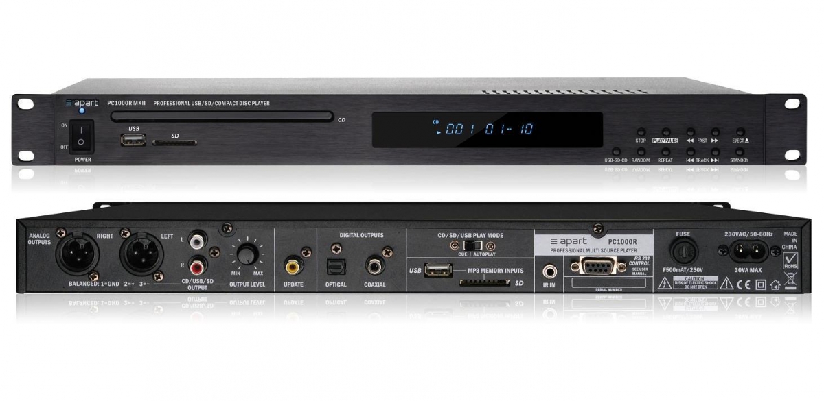 APart PC1000RMKII - многофункциональный источник аудиоконтента: USB/SD/CD-плеер. Читает МРЗ файлы с DVD/CD дисков.