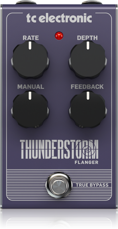 TC ELECTRONIC THUNDERSTORM FLANGER - гитарная педаль, флэнжер в винтажном стиле с легендарной полностью аналоговой электронной схемой BBD (Bucket Brigade Device) от зарекомендовавшего себя производителя, доступная по весьма демократичной цене. Эта модель дает возможность получить классическое аналоговое звучание флэнжера прошлых лет. Педаль отлично проявит себя в любых музыкальных стилях. Гибкие возможности настройки позволяют обогатить Ваше звучание широкой палитрой винтажных тембров: классические психоделические риффы 60-х, узнаваемый звук 80-х – любое звучание на любой вкус. Управление THUNDERSTORM удобно и эргономично: Rate настраивает скорость модуляции, Depth определяет интенсивность применяемого эффекта, Manual - центральную точку задержки, Feedback – тип и объем резонанса. Режим True Bypass гарантирует, что эффект не влияет на звук инструмента, когда не используется. Педаль заключена в прочный цельнометаллический корпус «Built-like-a-tank» ярко-голубого цвета, способный выдержать не самое бережное обращение на концертах и в турах. Электропитание осуществляется от батарейки «Крона» 9 вольт или сетевого адаптера TC Electronic Powerplug 9 (приобретается отдельно).