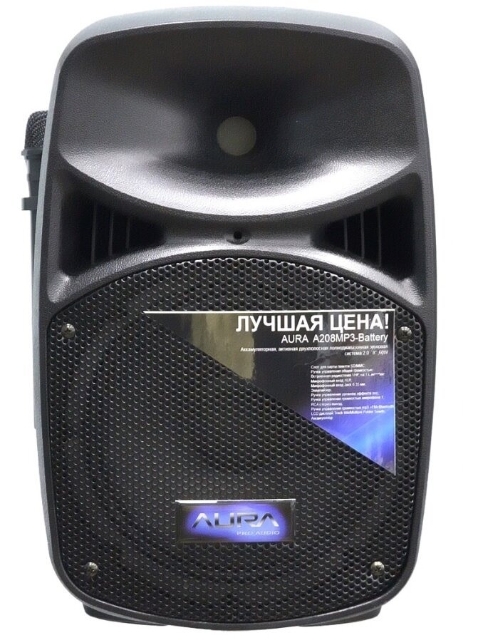 AURA A208MP3-Battery - 60W 8", активная АС, Bluetooth/USB/SD/FM, 1 радиомикрофон, батарея.