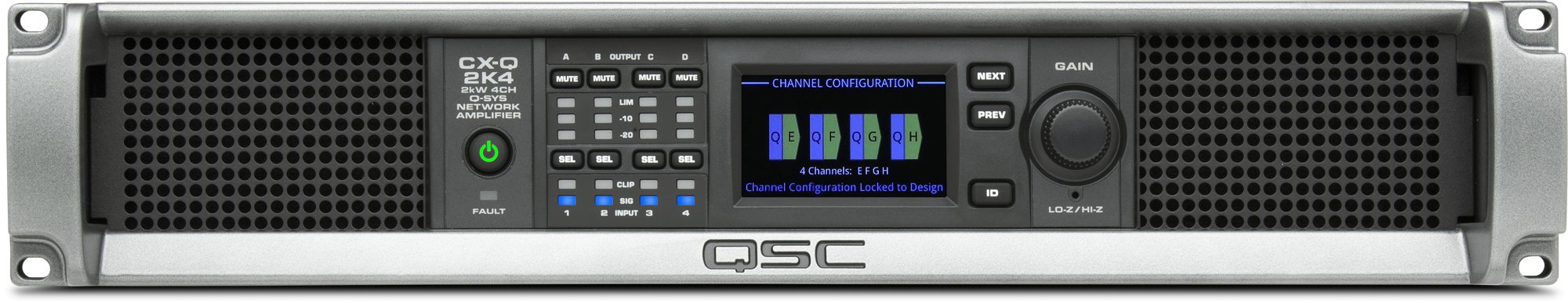 QSC CX-Q 2K4 - 4-канальный усилитель 4 х 500Вт Q-SYS, Lo-Z, 70В, 100В, FlexAmp™, входы Mic/line, 100-240В.