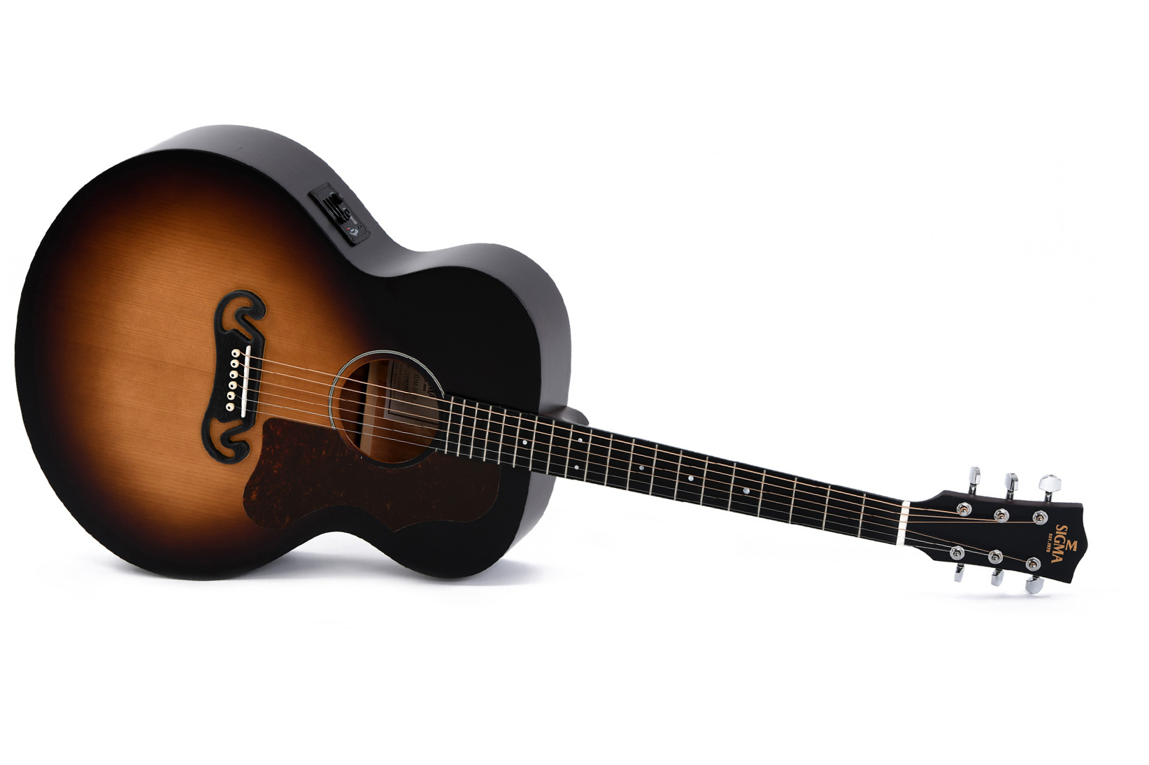 Sigma GJM-SGE - электроакустическая гитара с Grand jumbo формой корпуса, изящно созданная из сихтинской ели в топе и махагони – нижняя дека и обечайки.