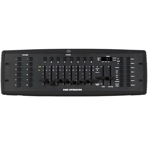 ADJ DMX Operator I - пульт управления светом DMX , 192 канала (12 приборов по 16 каналов каждый), 240 сцен, 6 чейзов, возможность встраивания в РЭК-19” ,встроенный микрофон, совместим с MIDI-стандартом, ЖК-дисплей.