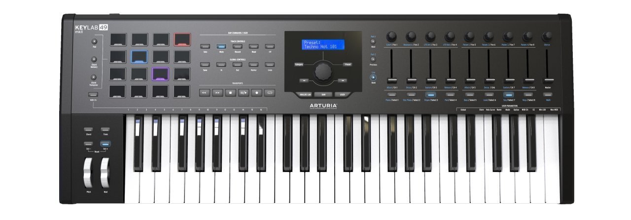 Кнопки быстрого доступа: Нужен звук фортепьяно? Нажмите кнопку «Пианино», и входящая в комплект программа Analog Lab 3 покажет вам все возможные варианты пианино.Технические характеристики Arturia KeyLab mkII 49 Black: