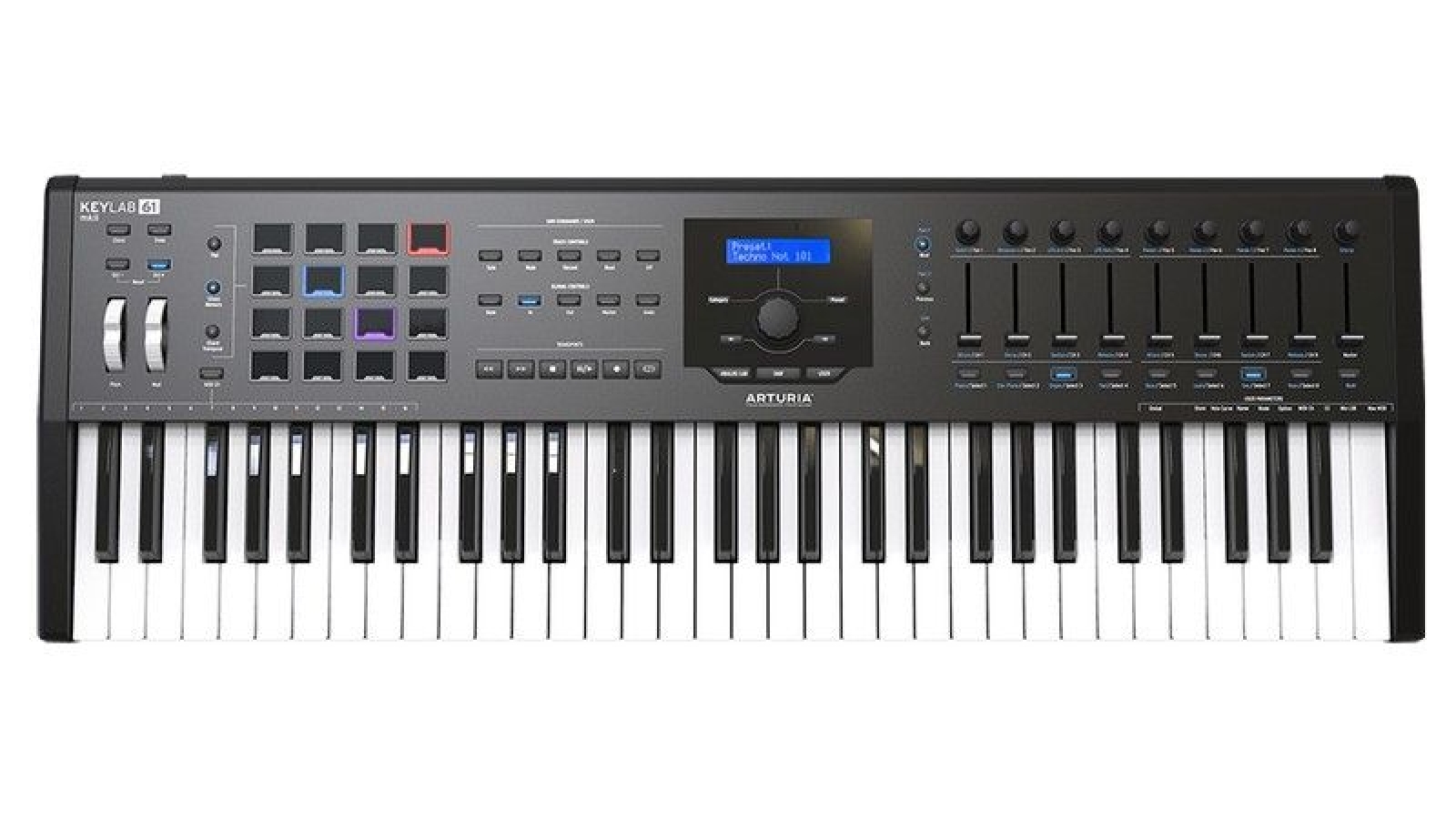 Arturia KeyLab mkII 61 Black - это квантовый скачок с точки зрения управления, качества и экспрессии. Его отличительные особенности: 61 -клавишная клавиатура с откликом, алюминиевый корпус, продвинутый конфигурируемый интерфейс, 16 пэдов с RGB-подсветкой, 9 крупных фейдеров, 9 поворотных ручек (энкодеров), 5 входов управления экспрессией, 4 CV-выхода, интеллектуальные переключатели категорий и, конечно, MIDI- и USB-порты. В состав комплекта включено впечатляющее программное обеспечение: цифровое пианино Arturia’s complete Piano V, Analog Lab 3, and Ableton Live Lite.