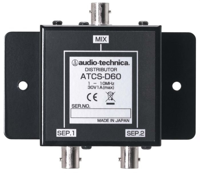 Распределительное устройство Audio-Technica ATCS-D60 – это распределительное устройство от японской компании Audio-Technica, которое используется для увеличения количества антенных разъёмов. Это необходимо для того, что бы к конференц – системе ATCS-60 можно было подключить до 16-ти инфракрасных приёмников/ передатчиков Audio-Technica ATCS-A60. Одно устройство ATCS-D60 имеет один вход и два выхода, но используя несколько устройств количество BNC входов можно увеличить до 16-ти.