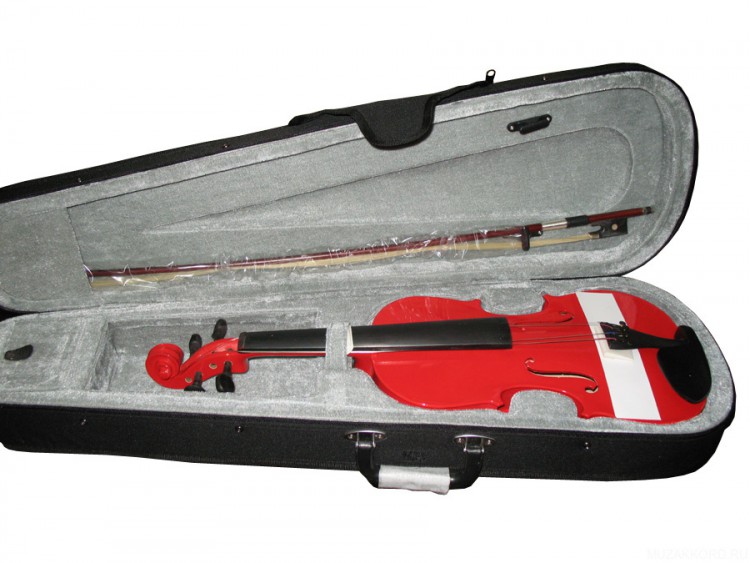 BRAHNER BVC-370/MRD 4/4 Скрипка Ученическая Размер 4/4 (рассчитана на детей 11+ лет) Верхняя дека - Ель Нижняя дека и обечайки - Клен Накладка грифа - Клен, окрашенный в черный цвет Подбородник и подставка - Клен черного цвета Струнодержатель - Металлический с 4 машинками Колки - Клен черного цвета Гриф - Клен Цвет - Красный металлик В комплекте - Смычок, кейс