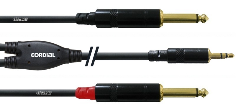 Cordial CFY 1.5 WPP - кабель Y-адаптер джек стерео 3.5мм—2 джека моно 6.3мм male, 1.5м, черный.