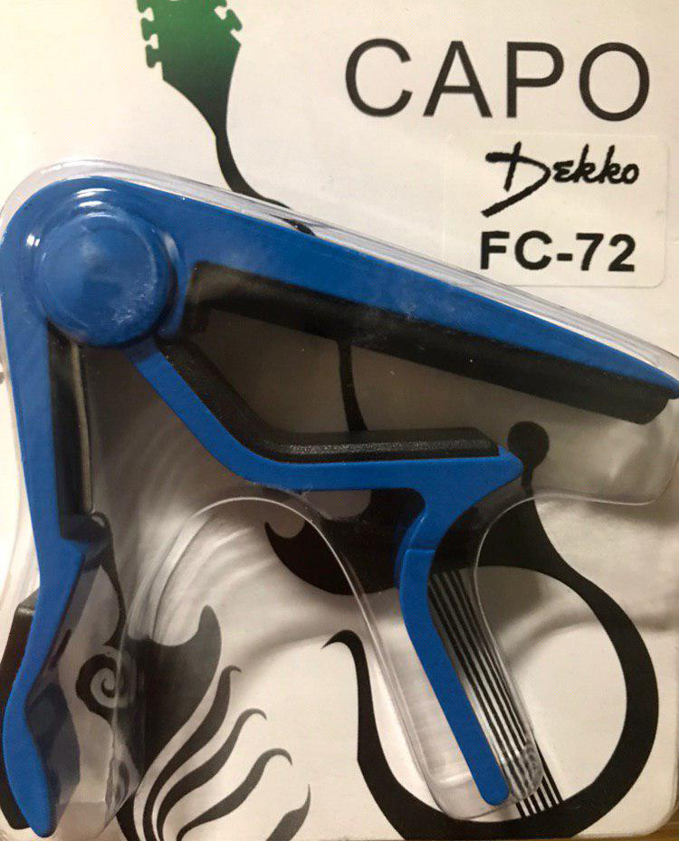 Каподастр гитарный универсальный, цвет - синий, прорезиненная поверхность, легок и быстр в использовании, не требует никаких дополнительных элементов и крепится прямо на гриф гитары одной рукой, в блистере
