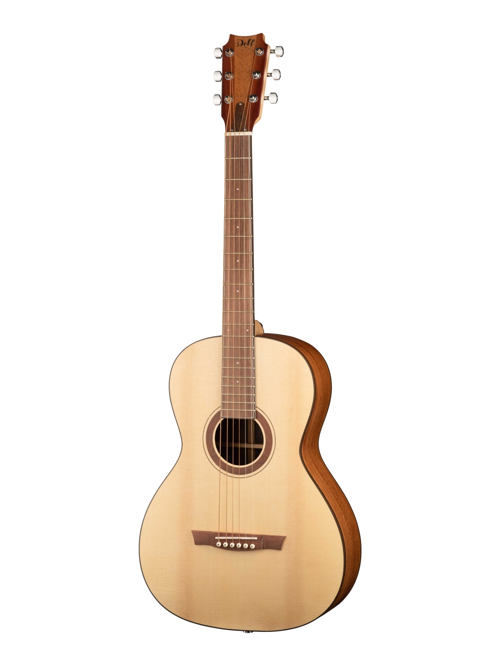 Форма корпуса Парлор, фолк. Данная модель с корпусом из массива красного дерева, верхняя дека из массива ели АА класса. Порожки кость, накладка и подставка из палисандра. Инструмент поставляется со струнами Elixir.