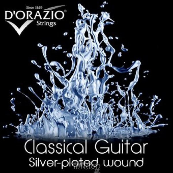 Струны для классических гитар (Пр-во Италия) сильного натяжения, чёрный нейлон, посеребренная навивка