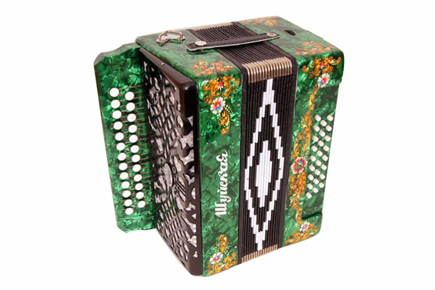 Трехголосая гармонь без регистра, звукоряд основан на неполной хроматической гамме.