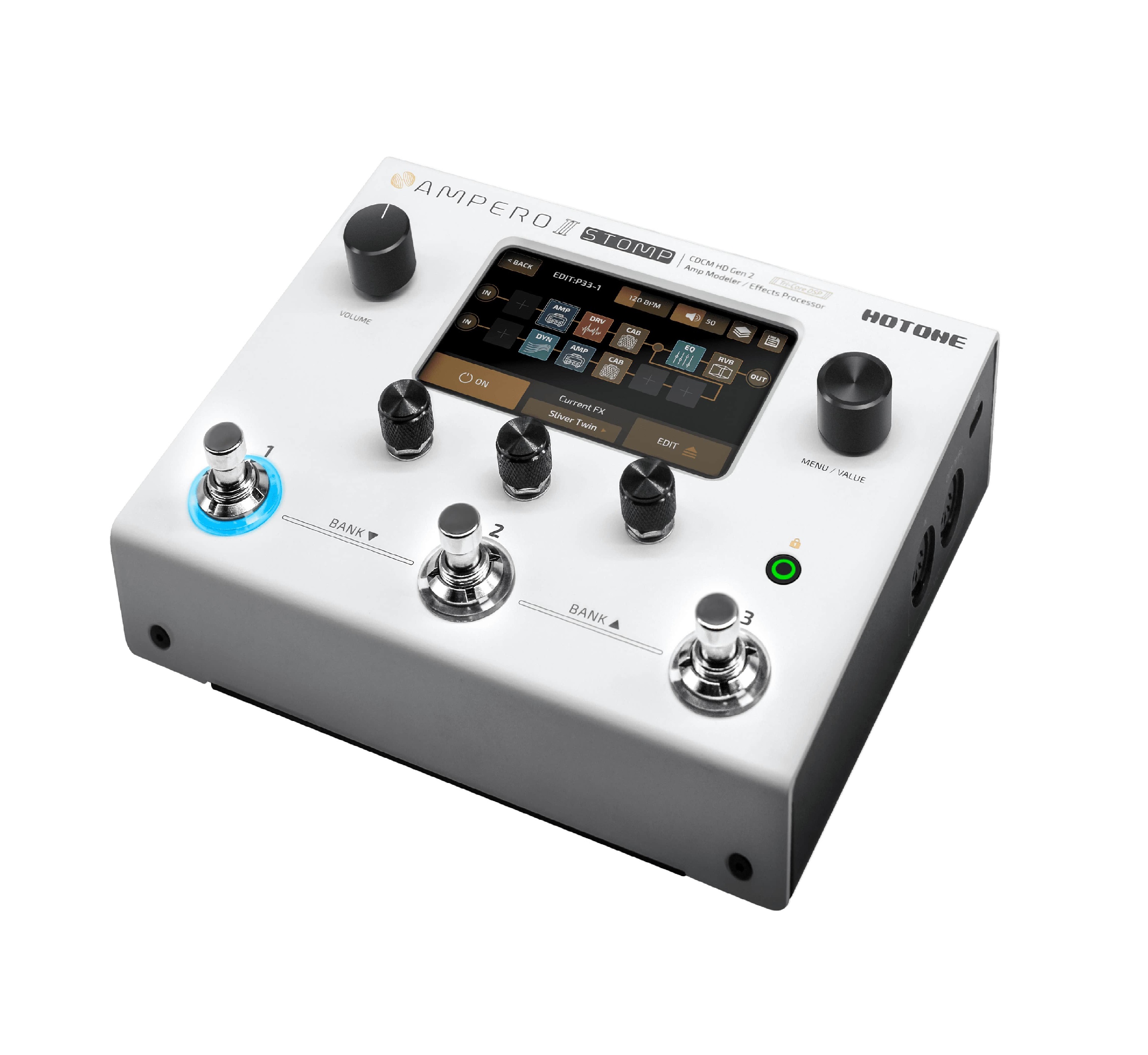 Ampero II Stomp – 2-е поколение напольных гитарных процессоров Hotone Ampero. Чрезвычайно гибкий в настройке и управлении и мощный прибор, способный решить большинство репетиционных и концертных задач каждого гитариста, бас-гитариста и даже клавишника.