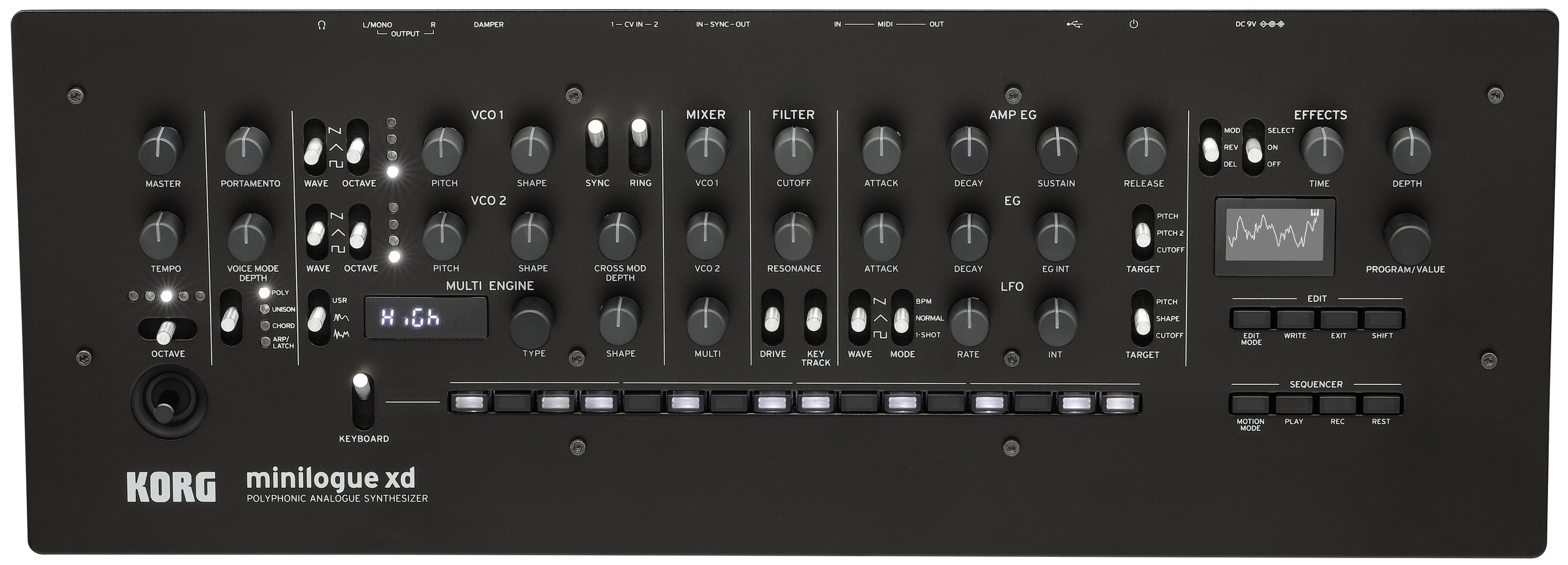KORG MINILOGUE-XD-M - новый настольный модуль Minilogue xd , четырех-голосый полифонический аналоговый синтезатор с настраиваемым цифровым multi-engine и встроенными цифровыми стерео эффектами.