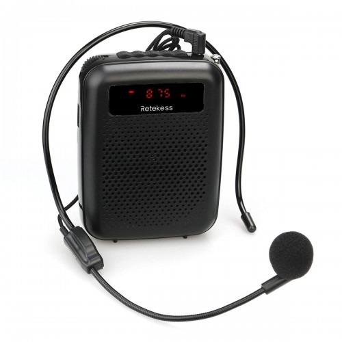 Retekess PR16R – поясной усилитель голоса с головным микрофоном оснащен мощным динамиком на 12 Вт, который обеспечивает хороший запас громкости и отлично подойдет для использования как в помещении, так и на улице. Портативный громкоговоритель отличается компактным корпусом, в комплект входит ремень с регулируемой длиной и клипса для ношения на поясе. Помимо функции усилителя голоса устройство поддерживает воспроизведение mp3 файлов с USB флешек до 64 Гб и карт microSD до 32 Гб, а также может использоваться в качестве приемника FM радио и диктофона. Retekess PR16R работает от встроенного аккумулятора на 1200 мАч, которого хватит на 12 часов беспрерывного использования.