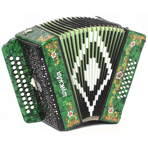 Трехголосая гармонь, звукоряд основан на неполной хроматической гамме.
