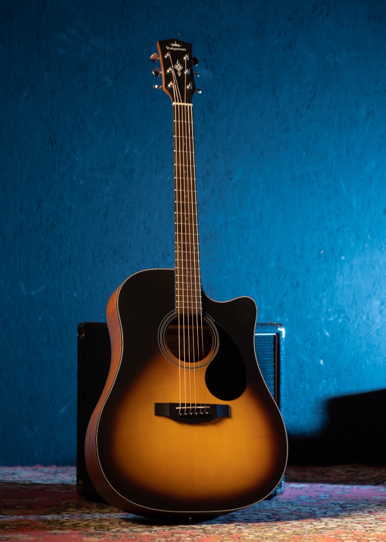 Kepma EDC Sunburst - Несмотря на невысокую стоимость, гитара проявляет себя отличным звуком и строем. Прекрасно подойдет для тех, кто делает первые шаги в освоении инструмента, но может удовлетворить потребности и более серьёзного музыканта. Верхняя дека – ламинированая ель, нижняя дека и обечайки – махагон, бридж и накладка грифа – орех. Мензура 650 мм, ширина порожа – 43 мм.